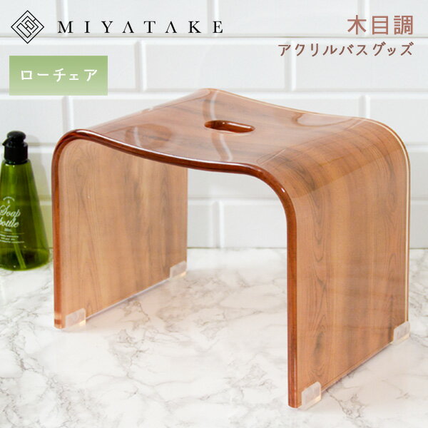 【数量限定アウトレット】【代引可】木目柄アクリルバスチェア 幅35.5×奥行き24×高さ25cm アクリル樹脂 EVA樹脂 完成品 滑り止め付き ブラウン【北海道・沖縄・離島以外送料無料】