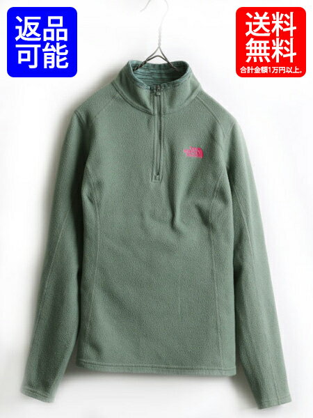 The North face ■ ノースフェイス 1/4 ジップネック プルオーバー フリース 長袖 Tシャツ ( 女性 レディース M ) 古着 ロンT ハイネック| 【古着】【US古着】レイヤー フリースジャケット フリースTシャツ プルオーバー ワンポイント プルオーバージャケット グリーン
