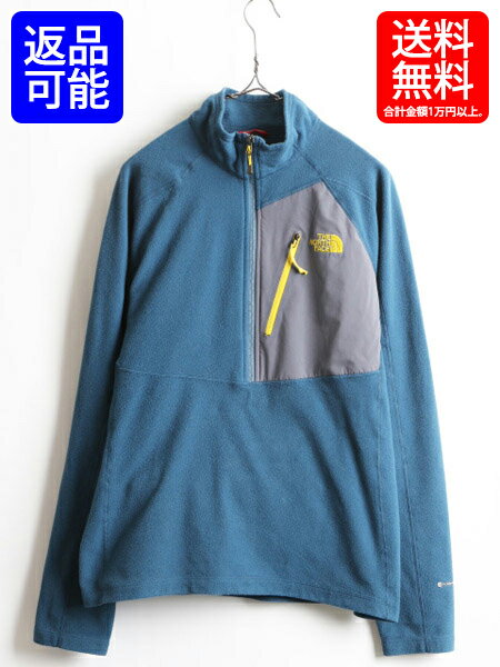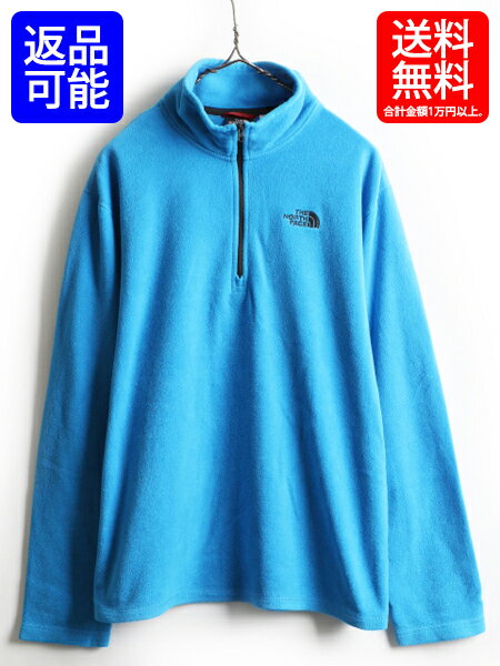 The Northface ■ ノースフェイス ジップネック 長袖 フリース Tシャツ (男性 メンズ M ) ロンT 古着 トップス 青 プルオーバー ハイネック| 【USA古着】 中古 ハーフジップ フリースTシャツ ワンポイント ロゴ 刺繍 長袖Tシャツ ロンT ブルー インナー レイヤー