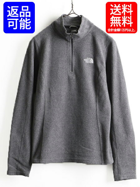 希少 S ■ ノースフェイス ジップネック 長袖 フリース Tシャツ ( 女性 レディース ) ロンT 古着 The North Face プルオーバー ハイネック| 【USA古着】 中古 ハーフジップ フリースTシャツ 長袖Tシャツ インナー レイヤー ワンポイント ロゴ 刺繍 グレー 灰 アウトドア