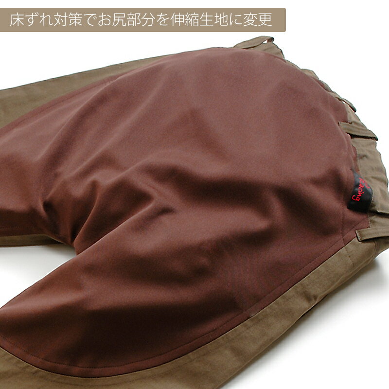 仕様 生産地:岡山県 生地:チノパン カラー:マロン 画像モデル ・前止まり仕様:マジックテープ仕様 ・褥瘡対策尻部分伸縮生地変更:希望する 生産 児島ジーンズ ピーチスマイルのポイント ・ お尻部分が一枚布で、お尻部分の圧を分散させます。