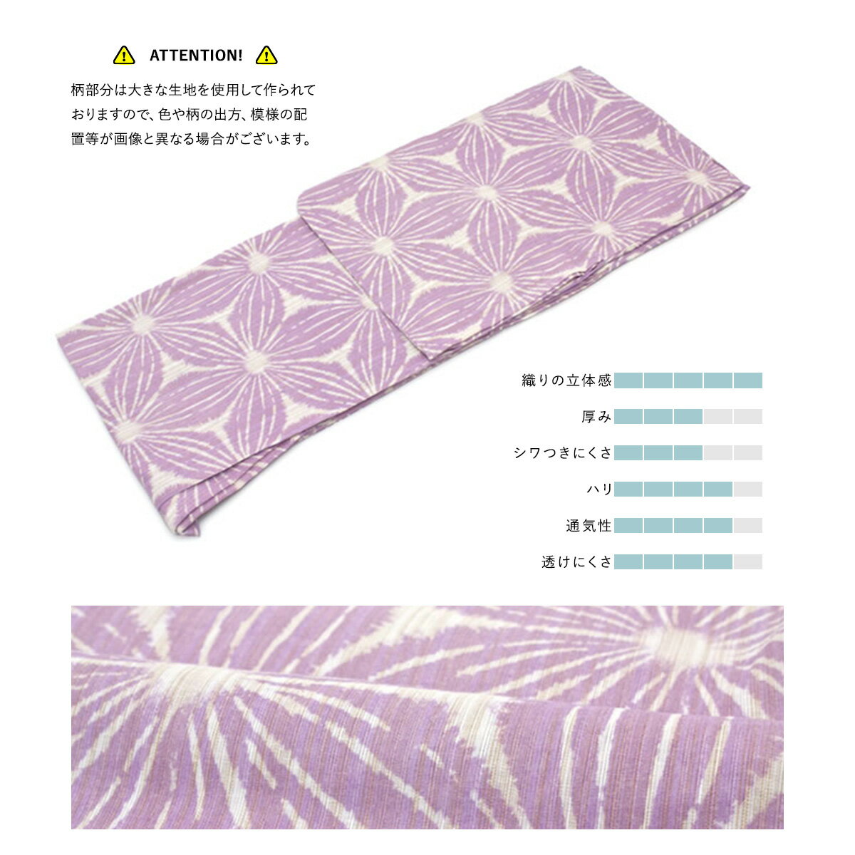 注意事項適度な透け感があるので、浴衣用のインナーの着用をおすすめいたします。